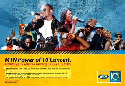 As a means of appreciating its customers for their patronage in the last 10 years, MTN Nigeria has put together a series of concert for ten cities across the country, with each parading one leading artiste and a host of other wonderful entertainers.