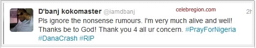 However, Olufamous.com can confirm that the story is untrue. D'banj himself have cleared the air and source close to him said they are checking to ascertain where the rumour came from.