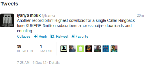 From his above tweet, it's obvious the guy is breaking records and making a lot of cash from his hit track, KUKERE, with over 3 million Caller Tunez and downloads.