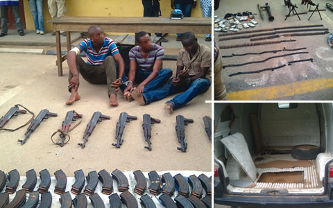 Three armed robbery suspects - Uche Okeagbu, Emmanuel Ezeani and Chinonso Nwuangwu - have been arrested by the Special Anti-Robbery Squad, Lagos Command, in connection with the September 9, 2012 robberies in the state, which left three policemen and a civilian dead.