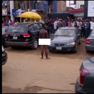 The man jumped down from his Range Rover and ran mad. Within few minutes, people gathered at the scene. He started displaying series of madness, pulled off his clothes, saying different irrelevant things.