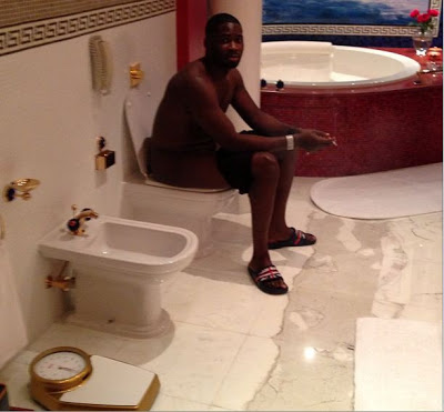This is Crazy... Tiwa Savage's Fiance Posts Photo of Himself in Expensive Toilet