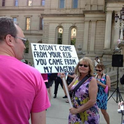 Is this lady in a battle with gay folks or she's just challenging the origin of women?