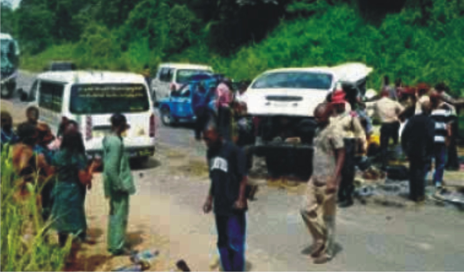On their way to the wedding introduction, the groom, his grandmother, uncle and the uncle’s wife who were riding in a Toyota Siena bus had a head-on collision with heavy duty truck belonging to Setraco Construciton Company.