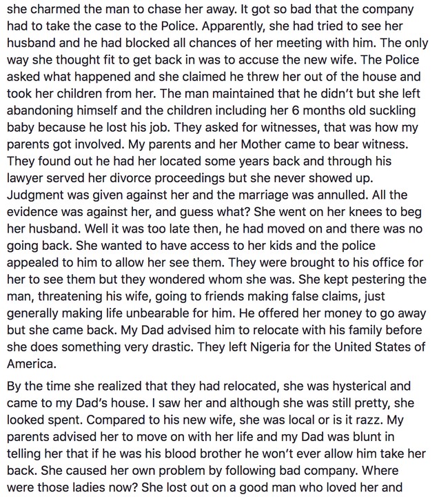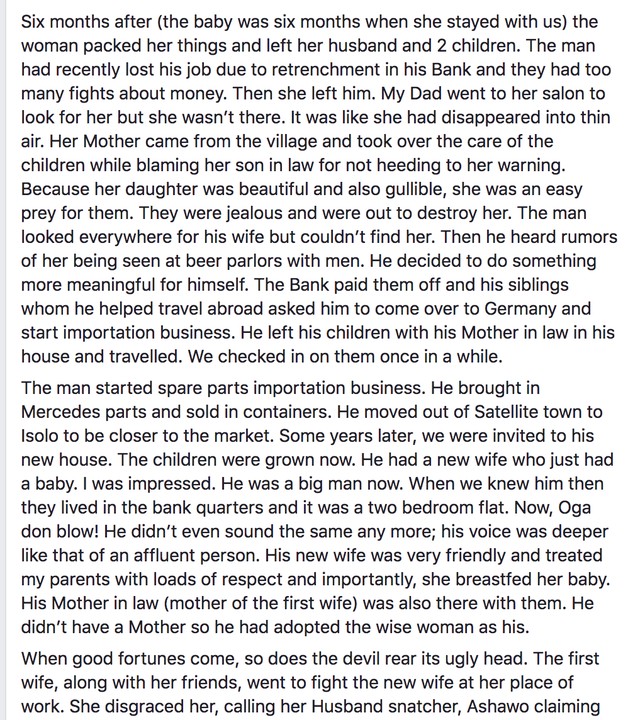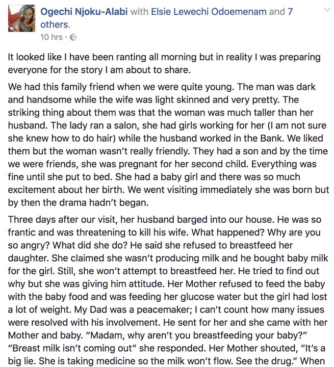 Here's a story about a Nigerian lady who first refused to breastfeed her baby because it will make her breasts sag, then dumped her husband, son and newborn baby weeks after the man she claimed to love lost his bank job. She absconded with other men. *Smiles*